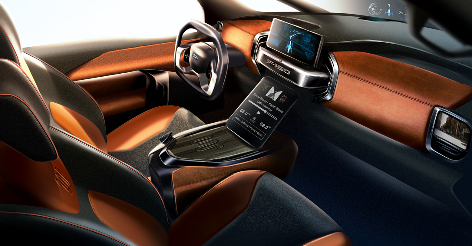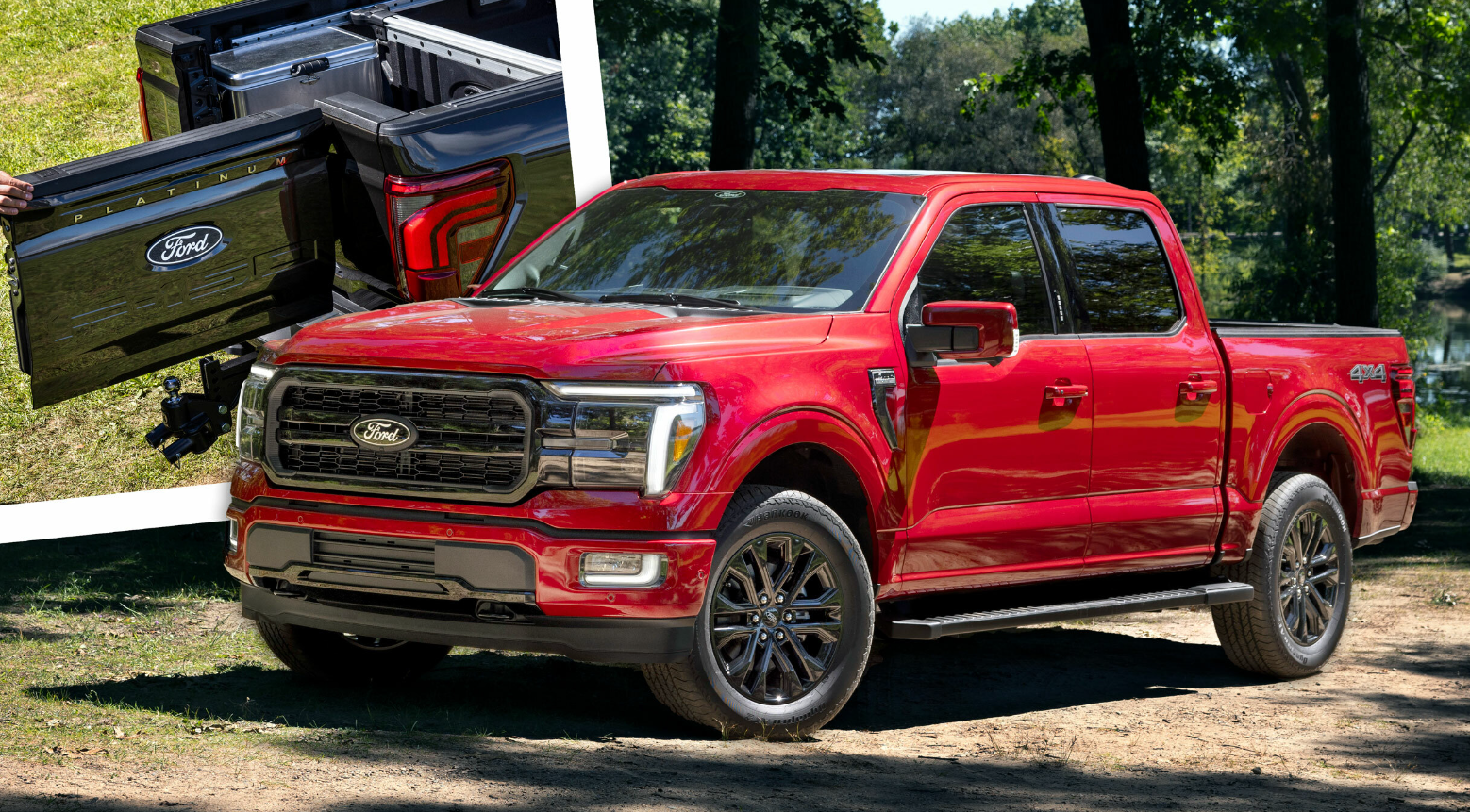 The F-150’s cabin is roomy and comfortable, with many storage areas and useful features. The F-150 has a 12-inch tablet infotainment system with SYNC 4, Apple CarPlay and Android Auto that work wirelessly, a 12-inch digital instrument cluster, a Bang & Olufsen sound system, and many technologies that help the driver. The F-150 also has some unique features, like a centre console that folds flat and can be used as a work surface, a power tailboard that can also be used as a workbench and a Pro Power Onboard generator that can provide up to 7.2 kW of energy.